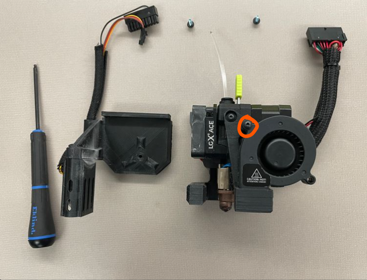 1. Gently place the toolhead asideYou can place screws on the magnetic bed to keep them in one place