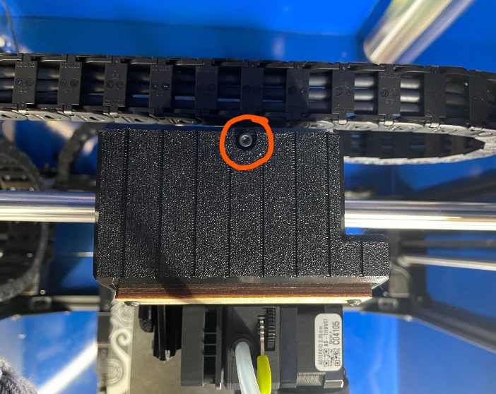 3. If that doesn't work, carefully push a 2mm hex into the toolhead, from the top. The filament stuck inside may extrude out of the toolhead