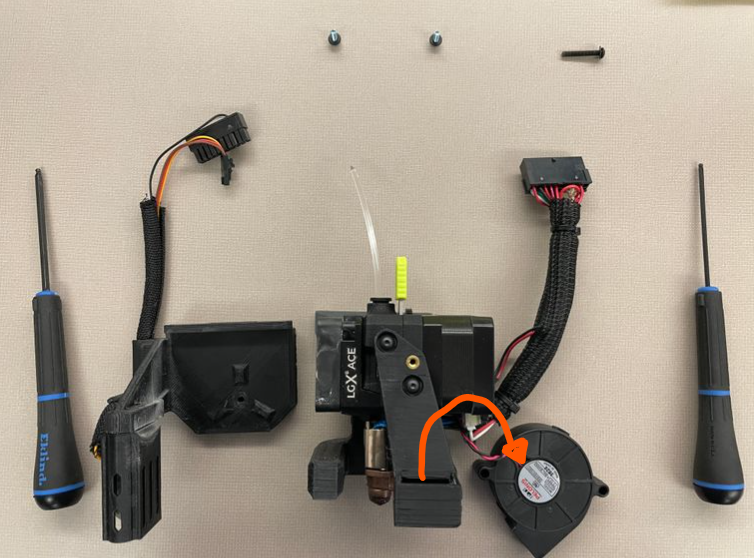 1. Unscrew the top two screws on the square fan using a 2.5mm hex key, and then pull the square fan off
